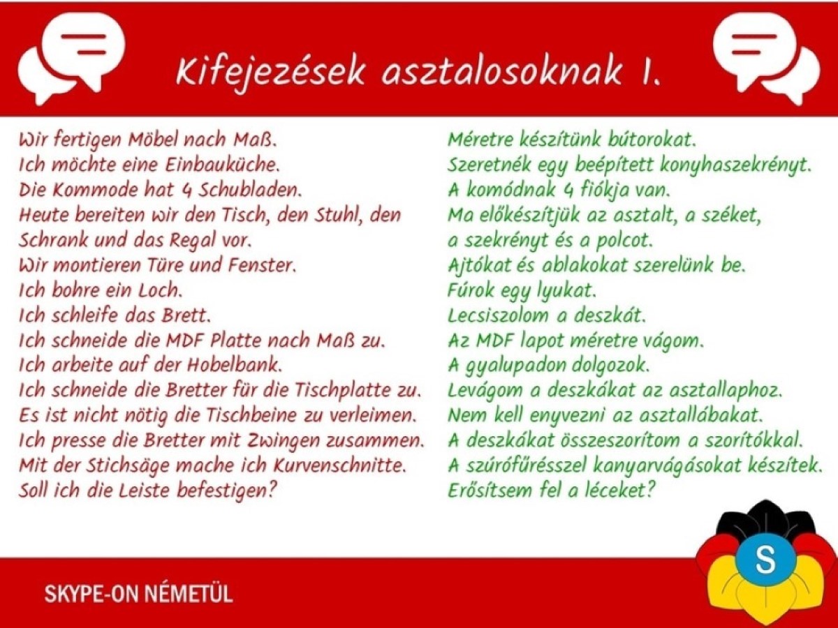 Német nyelvleckék - Kifejezések asztalosoknak - 1. rész