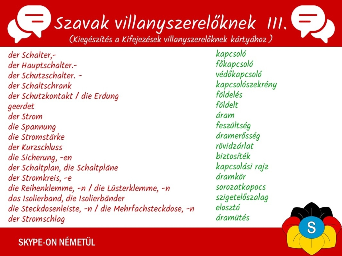 Német nyelvleckék- Szavak villanyszerelőknek 3. rész