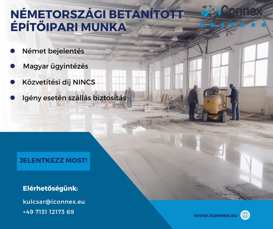 Építőipari betanított munka, ipari padlófelújítás Németországban, kiváló fizetéssel és szálláslehetőséggel, bruttó 4000€-4500€/hó