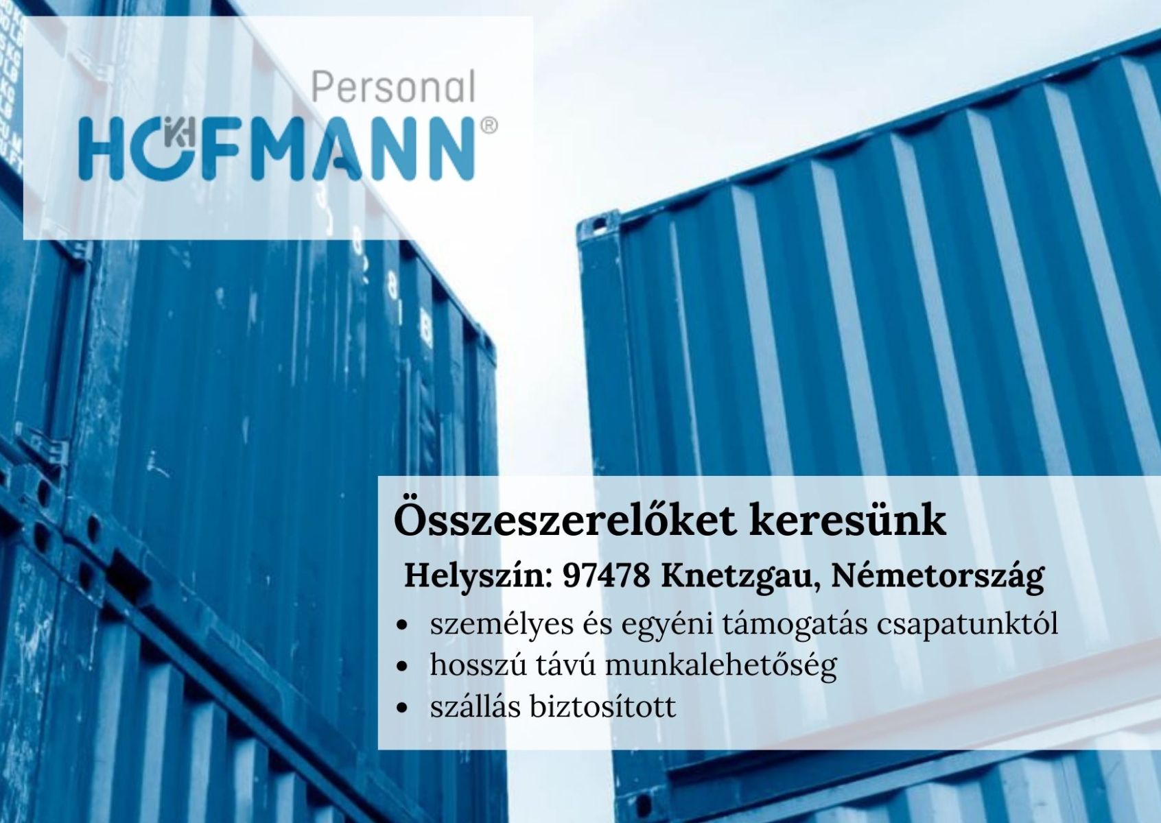 Egy újabb kihívást keresel? Van érzéked az összeszereléshez? Akkor nálunk teljesen jó helyen jársz! Knetzgaui ügyfelünk részére container összeszerelésben több pályázót keresünk!