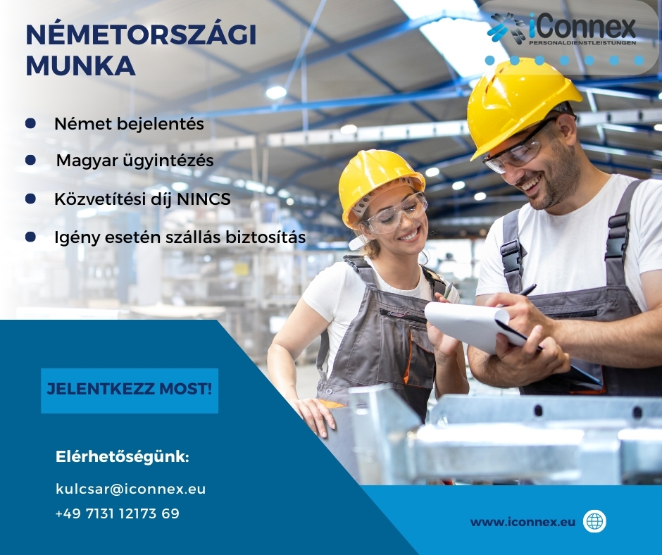 Az iConnex GmbH egy évek óta dinamikusan növekvő német cég, amely már több száz elégedett munkavállalóval rendelkezik. A vállalat Németország Baden-Württembergi tartományában van jelen és sokéves tapasztalattal rendelkezik a kelet Európai térségből érkezett munkavállalók foglalkoztatásában. Cégünket kimagaslóan jó minőség és megbízhatóság jellemzi, munkavállalóinkra kiemelt figyelmet fordítunk.